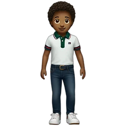 A child with a dark green tommy hilfiger polo with a dark blue jean emoji