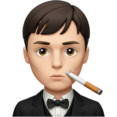 Tommy Shelby in black dress with a cig in his mouth and make his face exact emoji | AI Emoji Generator