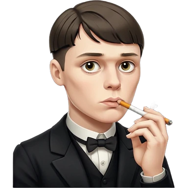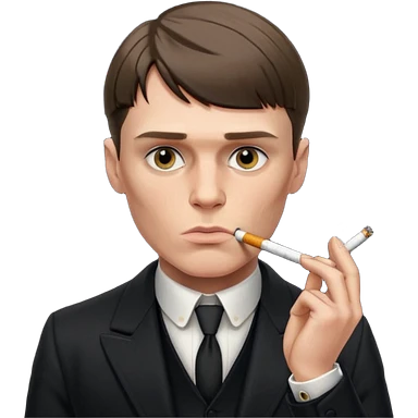 Tommy Shelby in black dress with a cig in his mouth and make his face exact emoji