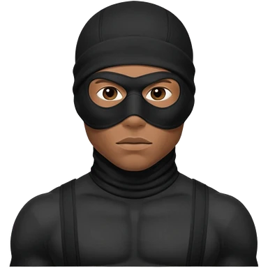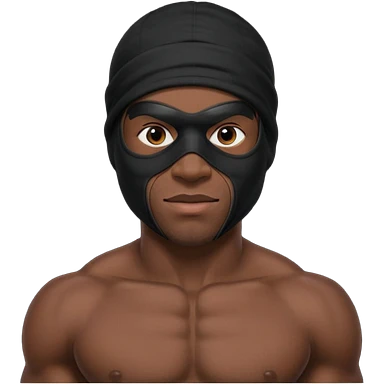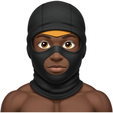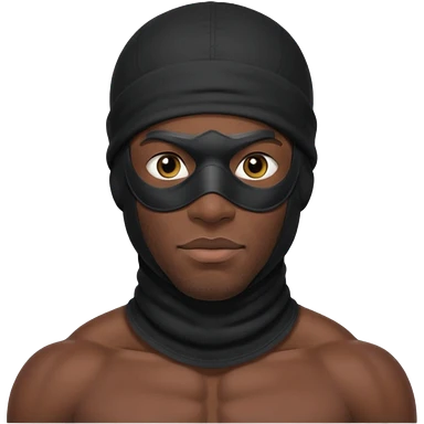 smug muscular african male black ski mask wearing guy with no top. wears a full ski mask with only eyes revealed emoji