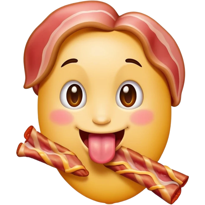 tongue out emoji holding a bacon strip, playful pose emoji | AI Emoji Generator
