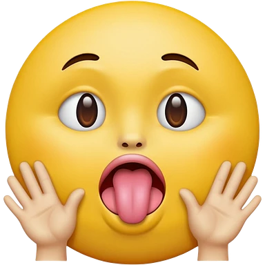 Yellow circle face with tongue out and hands on each side facing outward emoji