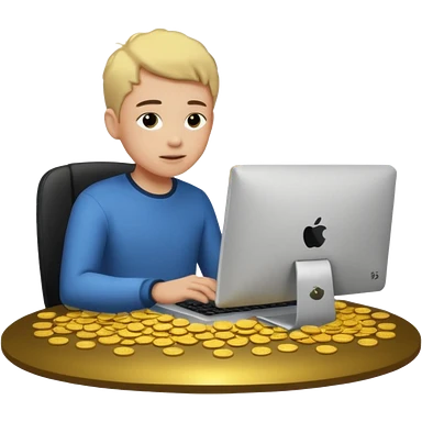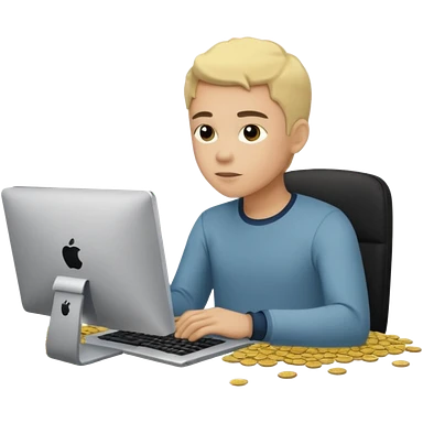 sujeto en su computadora con particulas de dinero alrededor emoji