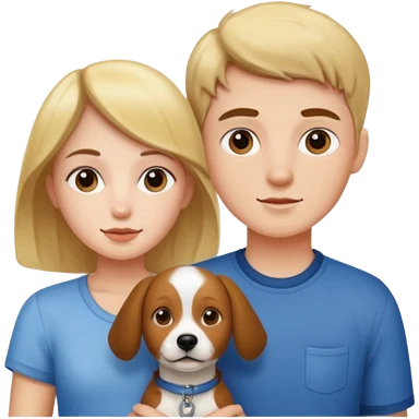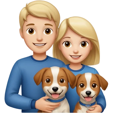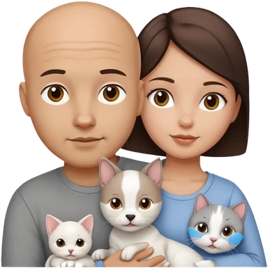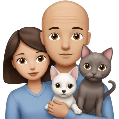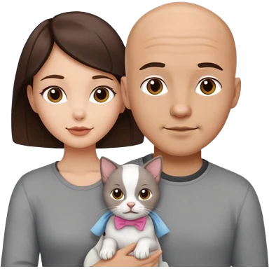 Bald guy with brunette girl and white puppy and Grey cat emoji