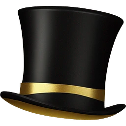a yellow face emoji NOT SMILING saluting with a top hat that has a periwinkle band on it emoji