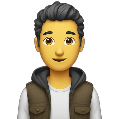 Um menino de etnia branca com cabelo estilo topete ede cor preta e uma camisa azul e um moletom azul claro emoji
