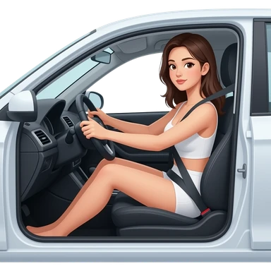 Topless asian woman, exposed breasts, driving car, no clothes emoji