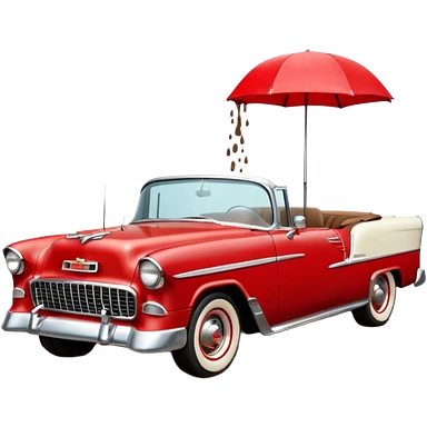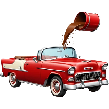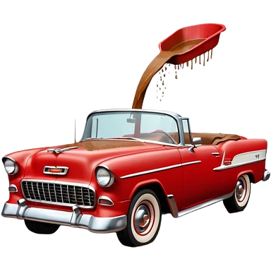 1955 Chevrolet Bel Air Convertible, Red-White color, with a bucket of brown mud pouring down on it, and the car itself is covered in brown mud on the sides that has stuck.32x32 pixels, aspect ratio: 1:1 emoji