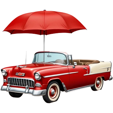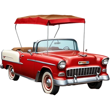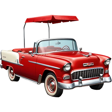 1955 Chevrolet Bel Air Convertible, Red-White color, with a bucket of brown mud pouring down on it. 32x32 pixels, aspect ratio: 1:1 emoji