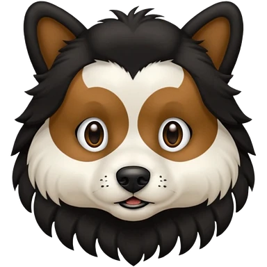 haz un perro negro con las patas y el ozico blancos toques marrones mucho pelo y ojos marrones emoji