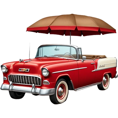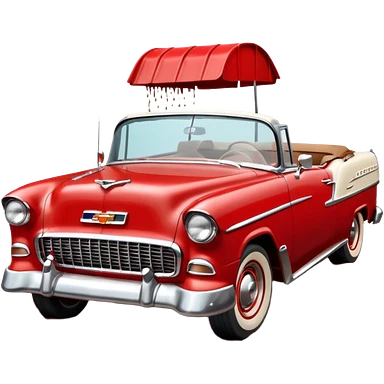 1955 Chevrolet Bel Air Convertible, Red-White color, with brown mud pouring down from above. 32x32 pixels, aspect ratio: 1:1 emoji