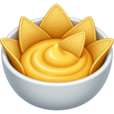 cheese dip in a small bowl with tortilla chips in triangle shape on the edge.. one dipped in the cheese dip emoji