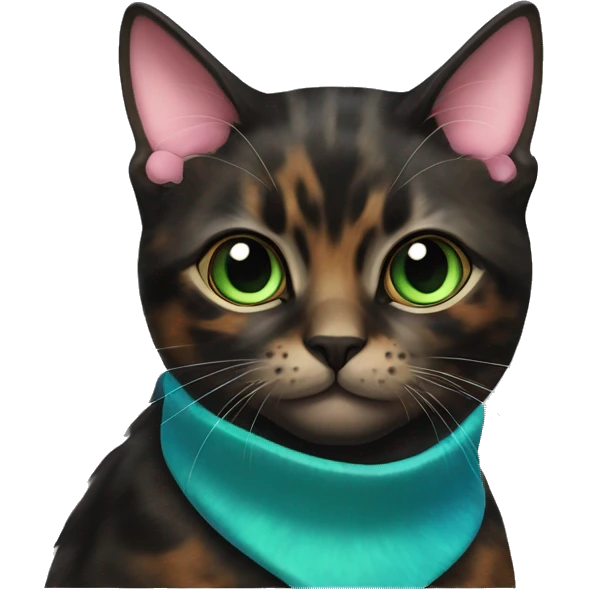 tortoiseshell cat, more black furr, with green-blue eyes and a pink collar emoji | AI Emoji Generator