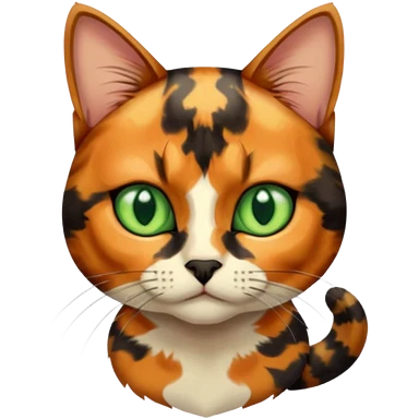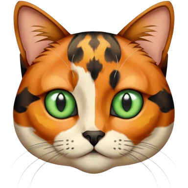 Tortoiseshell cat, yellow eyes, with big eyebrkws emoji