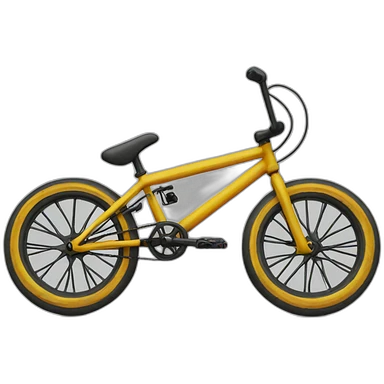 BMX bike with chrome frame, side view, small wheels with fat tires, high rise handlebars, pegs on axles, iOS emoji style emoji
