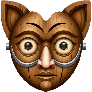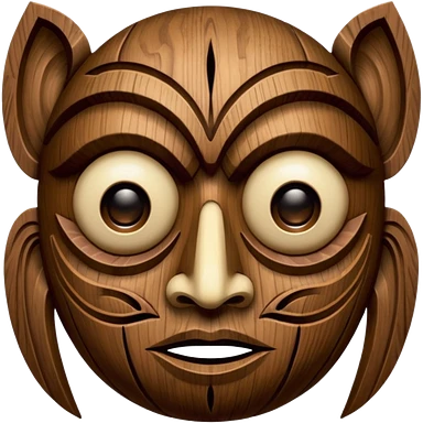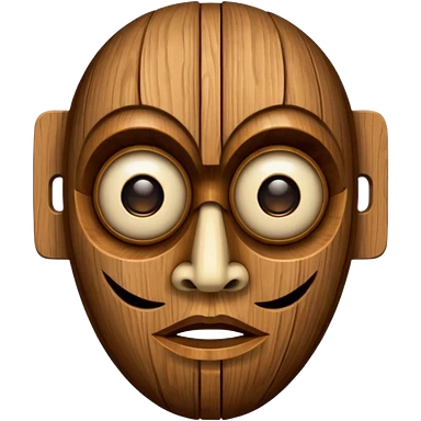 Wooden Mask, Brown carved wood face with hollow eyes. emoji