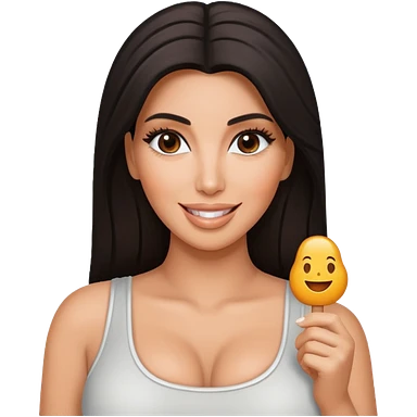 A beautiful blonde girl with long hair, blue eyes, pink lips is touched emoji