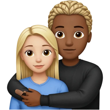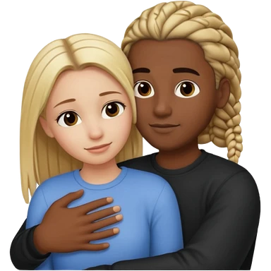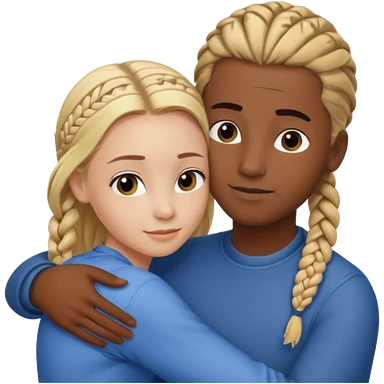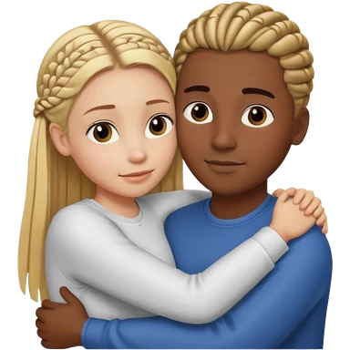blonde girl with straight hair and medium toned guy with darn brown cornrows hair hugging emoji