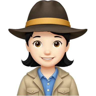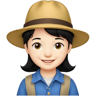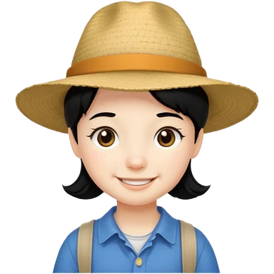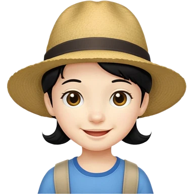 tourist kid with big hat and black hair emoji