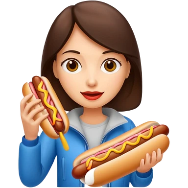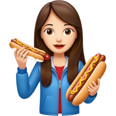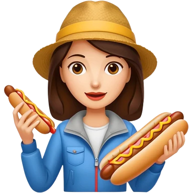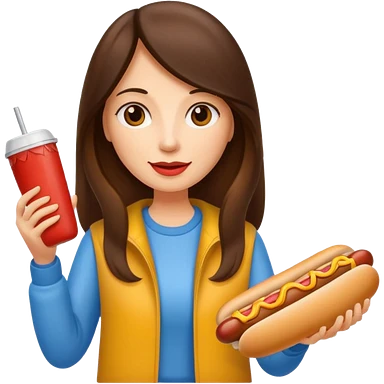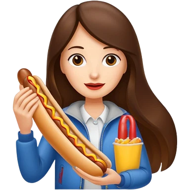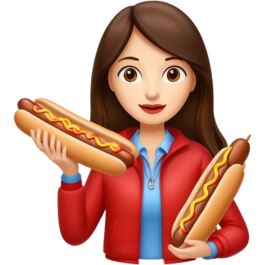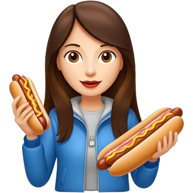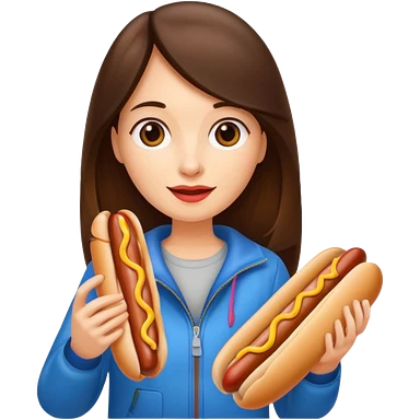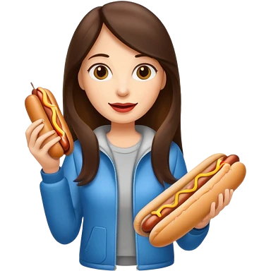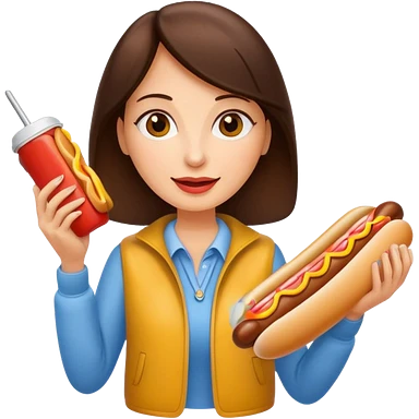 tourist brunette woman holding hot dog emoji