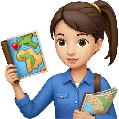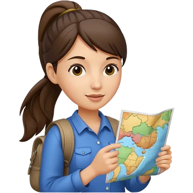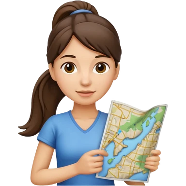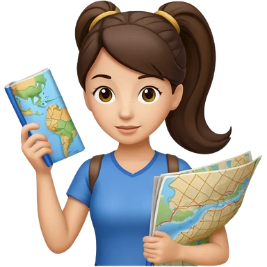 tourist brunette woman with ponytail holding map emoji