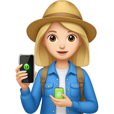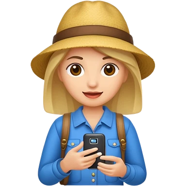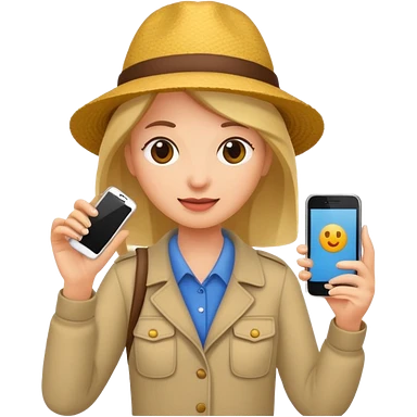 tourist woman holding phone emoji