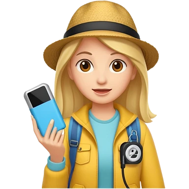 tourist woman holding powerbank emoji