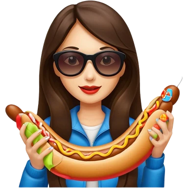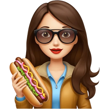 tourist brunette long hair woman with sunglasses holding hot dog emoji