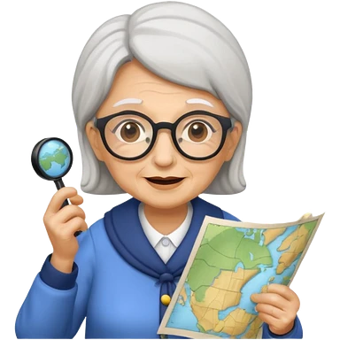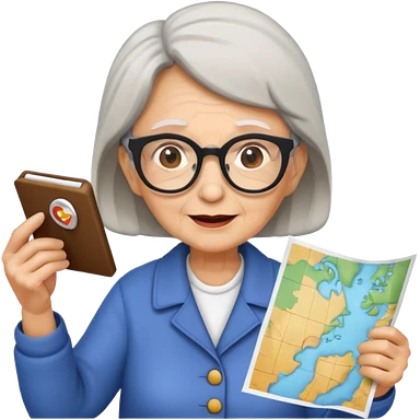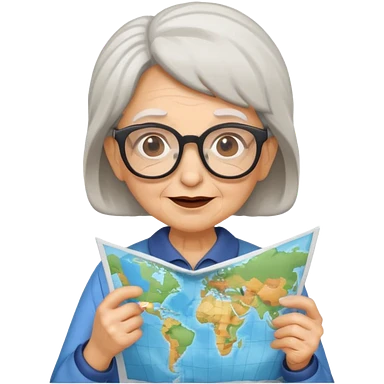tourist old woman with glasses holding map emoji
