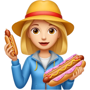 tourist woman holding street food emoji | AI Emoji Generator