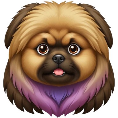 A brown coated Pekingese with a black long hair girl emoji