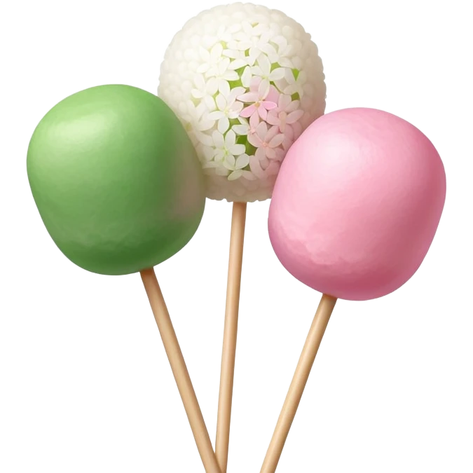 Traditional hanami dango with three colorful rice balls on a stick showing pink, white, and green colors emoji | AI Emoji Generator