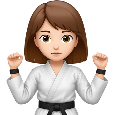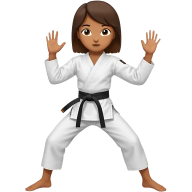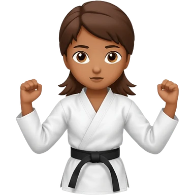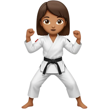 Ragazza castana che pratica karate, ha la cintura nera ed io tradizionale kimono bianco del karate, in posizione di guardia emoji