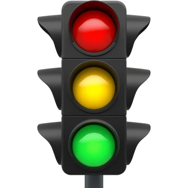 Traffic signal with green light illuminated. Top light red and dark. Middle light is yellow and dark. Bottom light is green and bright emoji