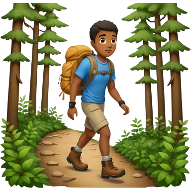 Generate an emoji of a winding forest trail surrounded by lush green trees and wildflowers. Use soft earthy tones, add a tiny bird in the sky, and make the path look inviting with warm light streaming through the trees. emoji