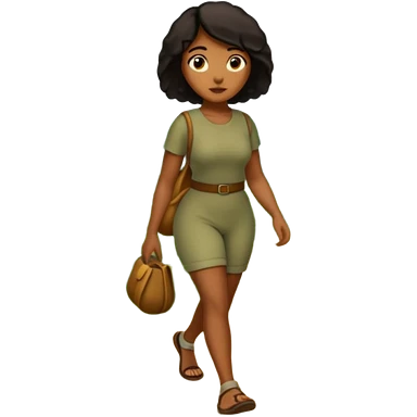 A 3D cartoon hiker silhouette standing on a rocky path at sunset, warm golden light, Memoji-style rendering. inside photo frame emoji
