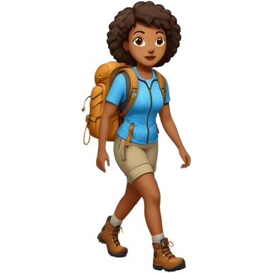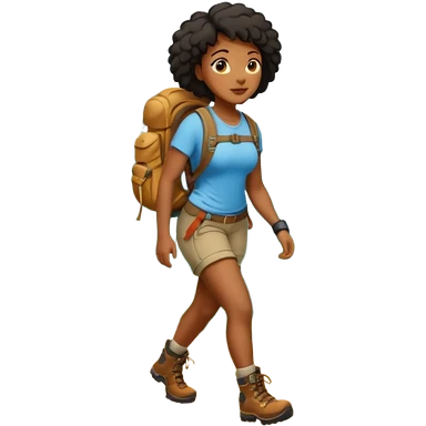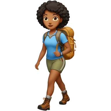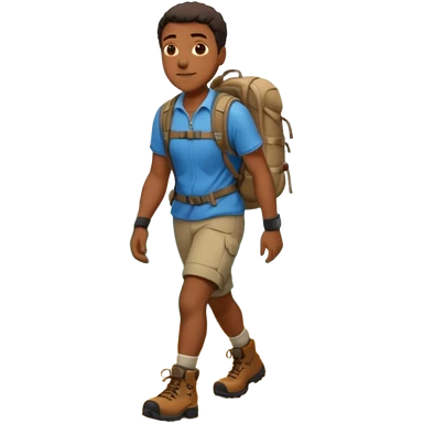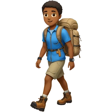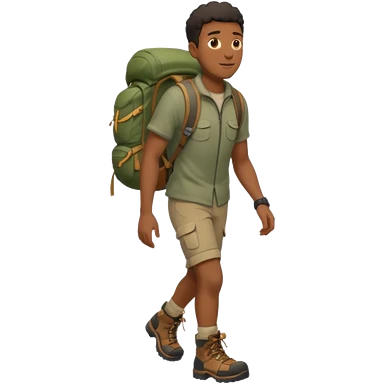 A 3D cartoon hiker silhouette standing on a rocky path at sunset, warm golden light, Memoji-style rendering. emoji