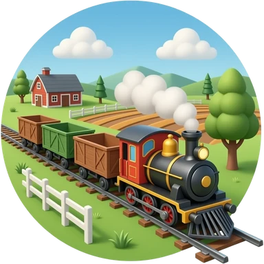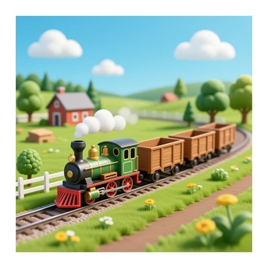 Realistic toy train pulling wagons in a miniature farm emoji
