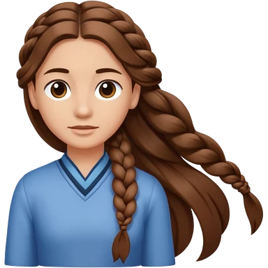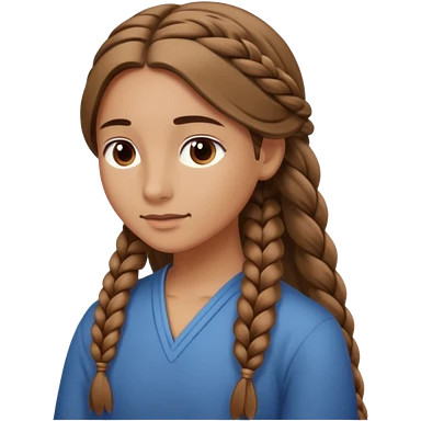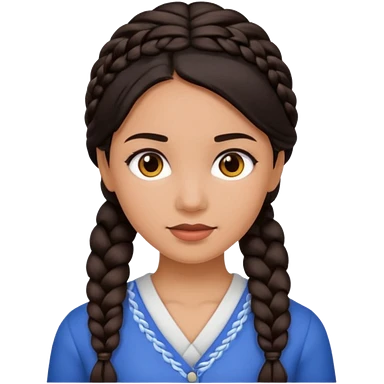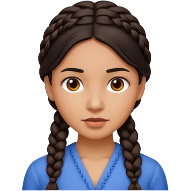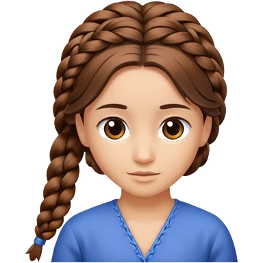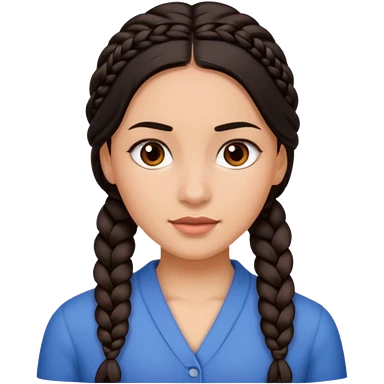 Professora com jaleco branco, morena clara, com cabelos longo castanho escuro, penteado uma trança de lado, usando brinco e óculos de grau redondo. emoji