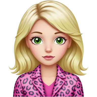 Green eyed white girl wearing a pink leopard print outfit with hair that is half blonde and half pink emoji