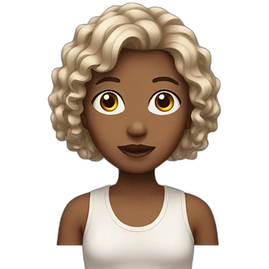 TransGirl with an oval face, fair skin, long dark brown wavy hair with bangs, brown eyes, dark brown straight eyebrows, medium-sized straight nose, slightly full lips, wearing a black choker necklace and a white t-shirt. emoji