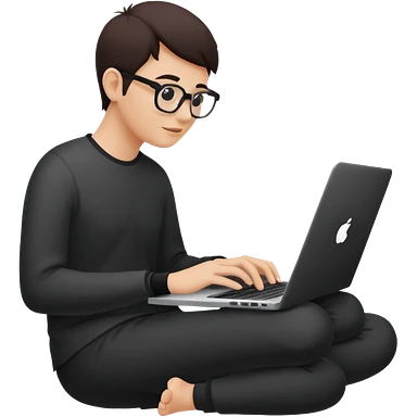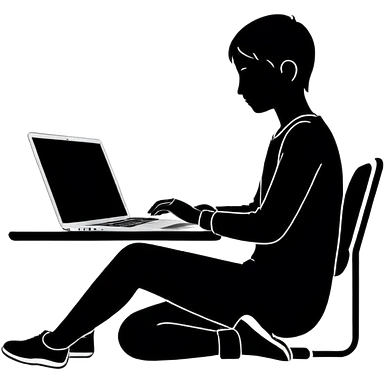 Minimalistic flat vector icon, iOS style, thin black contour on white background. Person silhouette sitting with a laptop, code brackets <> on the screen. Clean, no te emoji