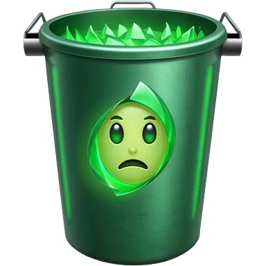 A trash bin that says on text GOODBYEEEE with hello Kitty in it emoji