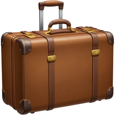 A 3D cartoon suitcase placed on the ground with travel stickers, soft sunlight, warm tone, realistic Memoji-style design. emoji