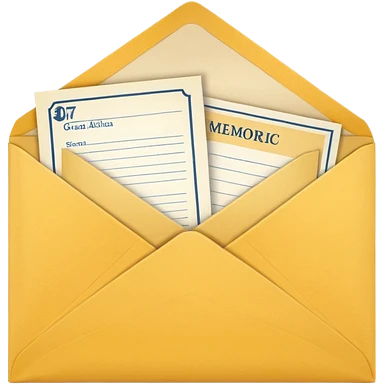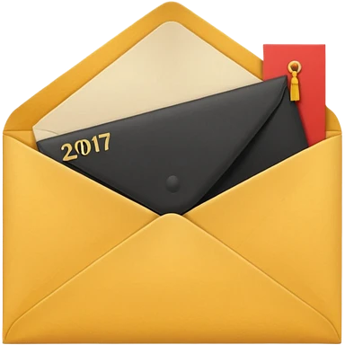 A simple emoji-style icon of a yellow manila envelope with subtle paper texture, clean edges, and a small graduation NUMBER 2017 group-photo icon on the front, representing class memories and archived academic records. emoji