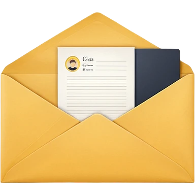 A simple emoji-style icon of a yellow manila envelope with subtle paper texture, clean edges, and a small graduation 2017 group-photo icon on the front, representing class memories and archived academic records. emoji