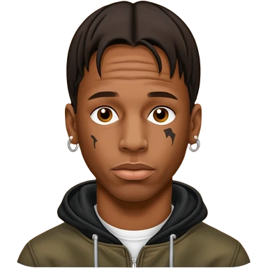 Travis Scott with gold chain necklace, wearing hat, dreadlock hair emoji