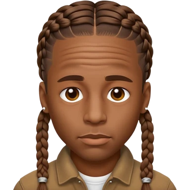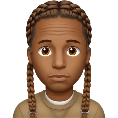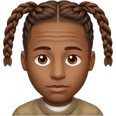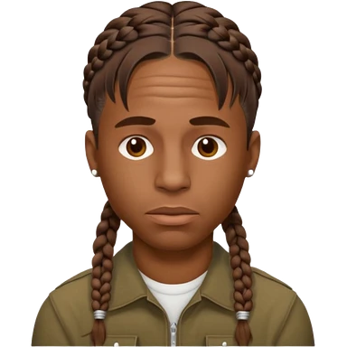 Create an iOS-style emoji of Travis Scott. Neutral facial expression, front-facing head only. Braided hair. Clean Apple emoji style, smooth shading, simple shapes, plain background. emoji
