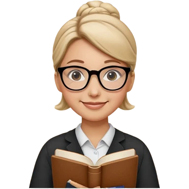 Teacher Look – tidy low bun, black-rim glasses, holding a book. emoji