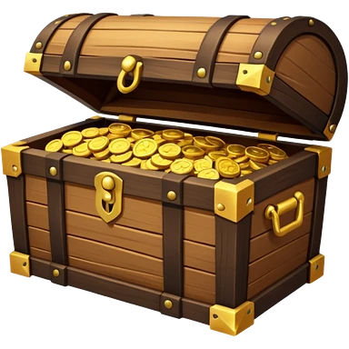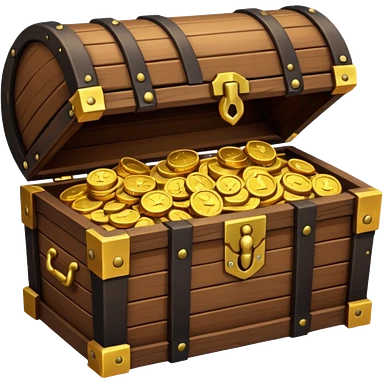 A wide, dark treasure chest with the lid open, showing gold coins emoji